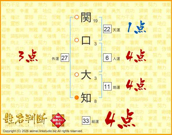 関口大知さんの総運は33画の4点!