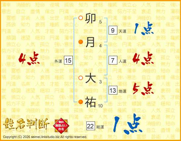 卯月大祐さんの総運は22画の1点!
