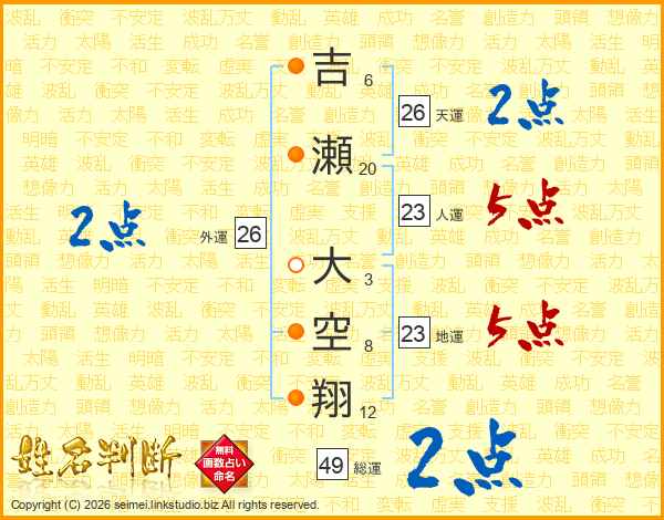 吉瀬大空翔さんの天運は26画の2点!