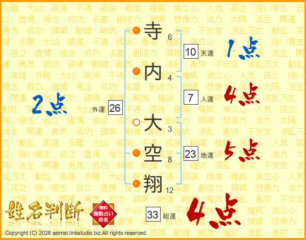寺内大空翔さんの総運は33画の4点!