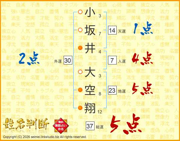 小坂井大空翔さんの総運は37画の5点!