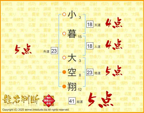 小(3画)暮(15画) 大(3画)空(8画)翔(12画)