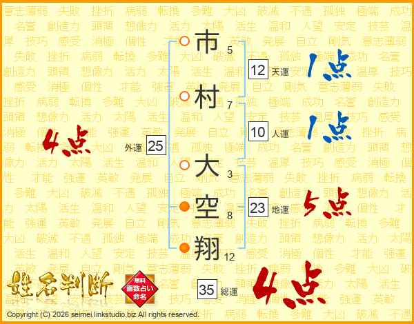 市村大空翔さんの総運は35画の4点!