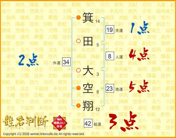 箕田大空翔さんの総運は42画の3点!