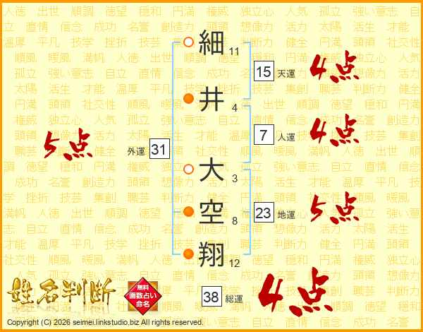 細(11画)井(4画) 大(3画)空(8画)翔(12画)