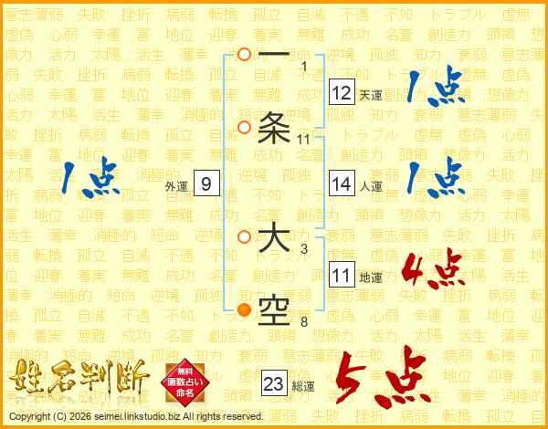 一条大空さんの地運は11画の4点!