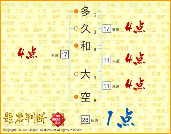 多(6画)久(3画)和(8画) 大(3画)空(8画)