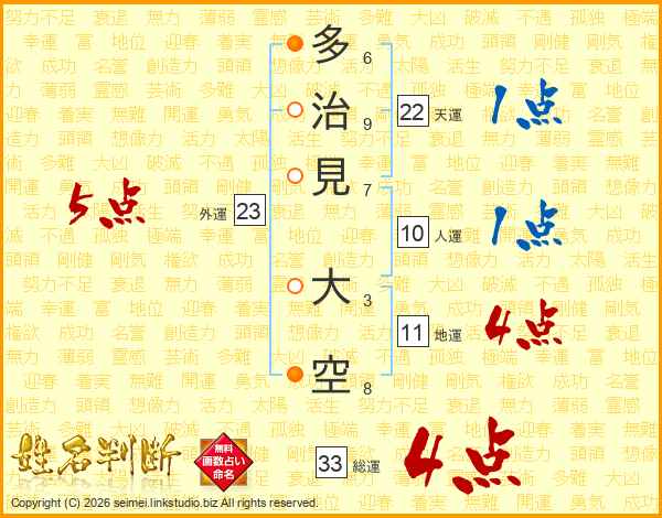 多治見大空さんの総運は33画の4点!