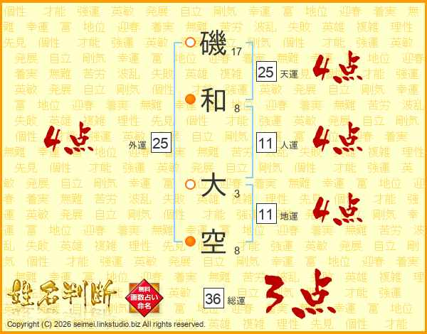 磯和大空さんの天運は25画の4点!