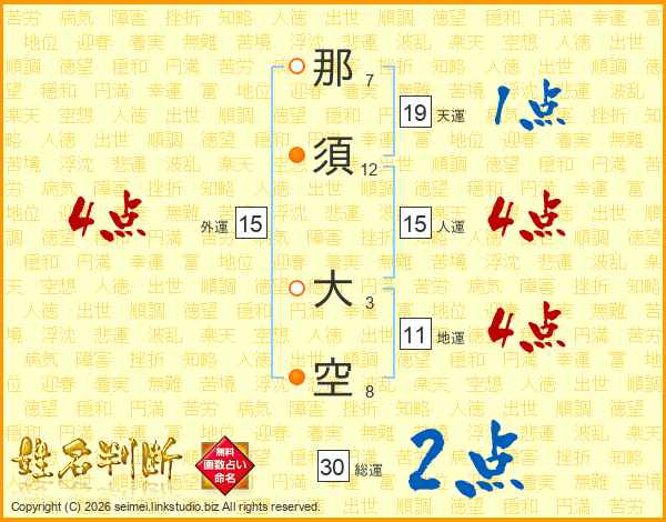 那須大空さんの総運は30画の2点!