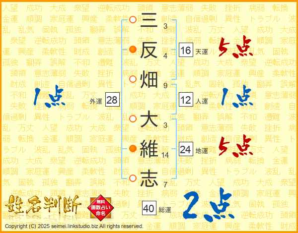 三(3画)反(4画)畑(9画) 大(3画)維(14画)志(7画)