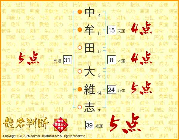 中牟田大維志さんの天運は15画の4点!