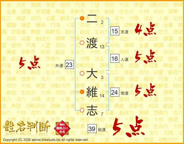 二渡大維志さんの総運は39画の5点!