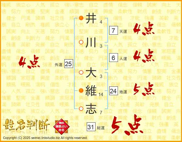 井川大維志さんの総運は31画の5点!