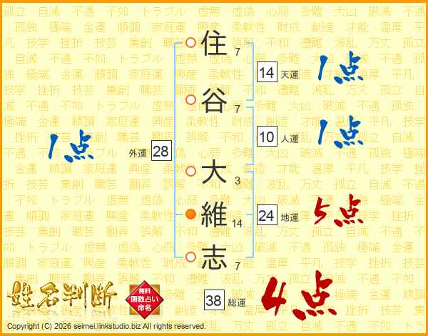 住(7画)谷(7画) 大(3画)維(14画)志(7画)