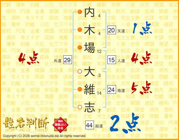 内木場大維志さんの総運は44画の2点!