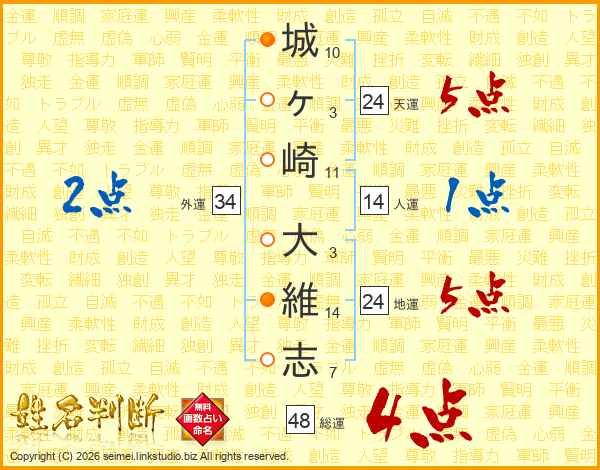 城ヶ崎大維志さんの総運は48画の4点!