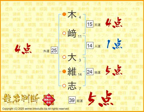 木﨑大維志さんの総運は39画の5点!
