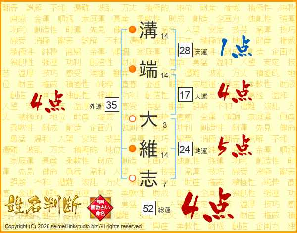 溝端大維志さんの総運は52画の4点!