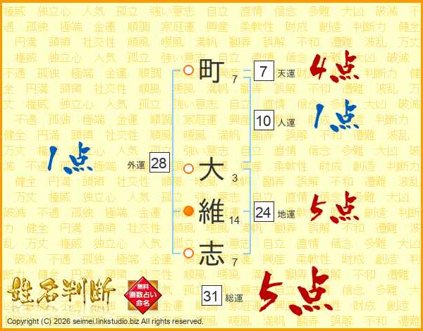 町(7画) 大(3画)維(14画)志(7画)