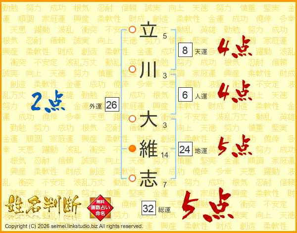 立川大維志さんの総運は32画の5点!