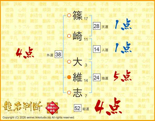 篠崎大維志さんの総運は52画の4点!