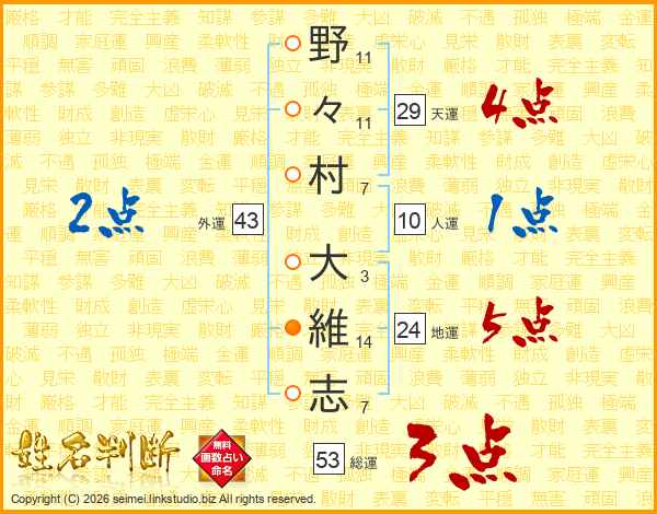 野々村大維志さんの外運は43画の2点!