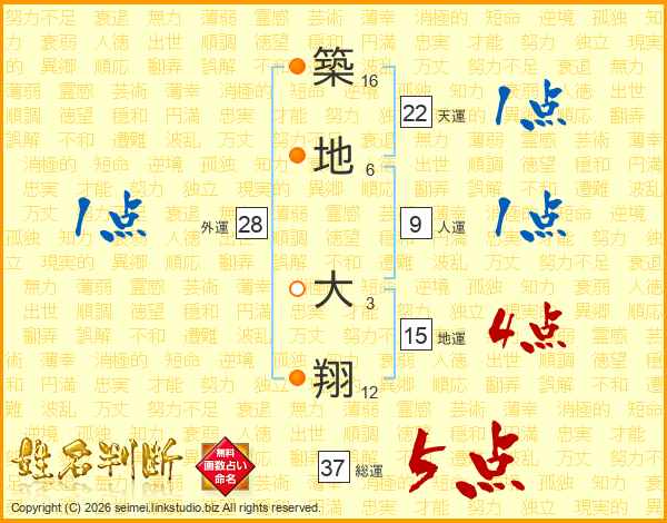 築地大翔さんの総運は37画の5点!