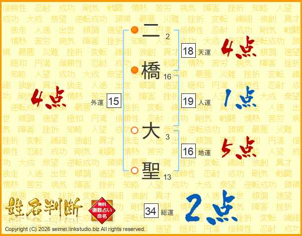 二橋大聖さんの総運は34画の2点!