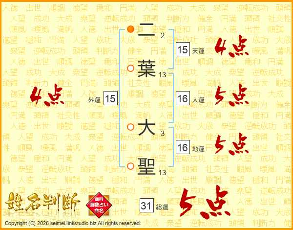 二葉大聖さんの総運は31画の5点!