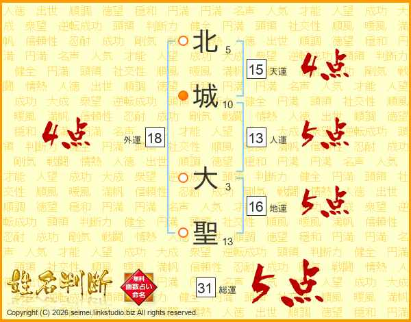 北城大聖さんの総運は31画の5点!