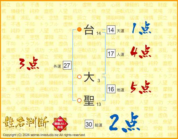 台大聖さんの総運は30画の2点!