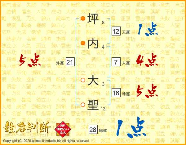 坪内大聖さんの総運は28画の1点!
