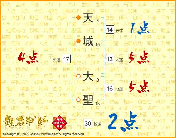天城大聖さんの天運は14画の1点!