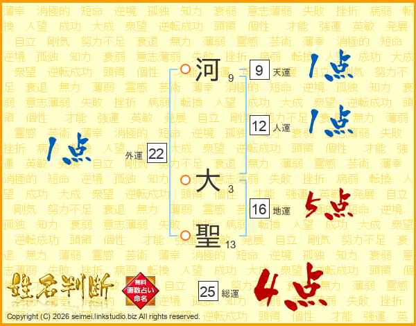 河大聖さんの総運は25画の4点!