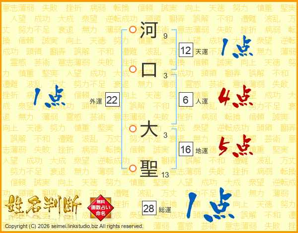 河口大聖さんの総運は28画の1点!
