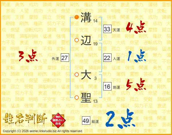 溝辺大聖さんの天運は33画の4点!