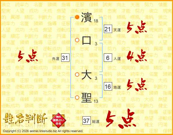 濱口大聖さんの総運は37画の5点!