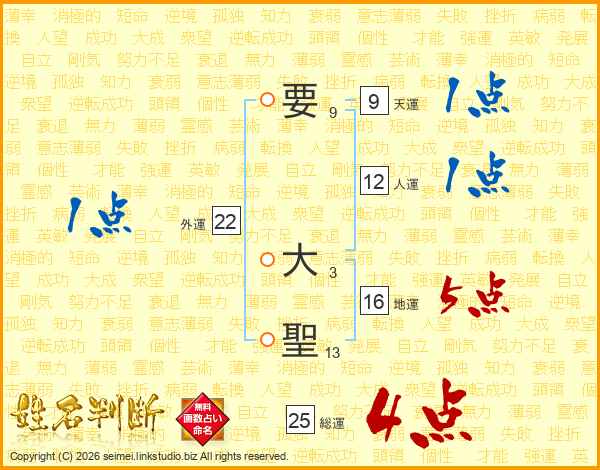 要大聖さんの総運は25画の4点!