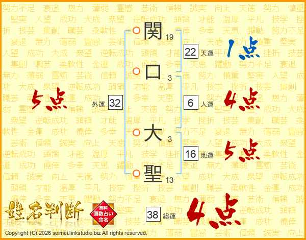 関口大聖さんの総運は38画の4点!