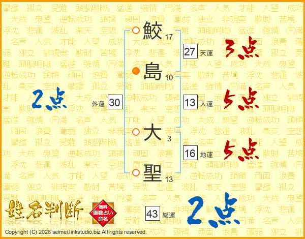 鮫島大聖さんの総運は43画の2点!