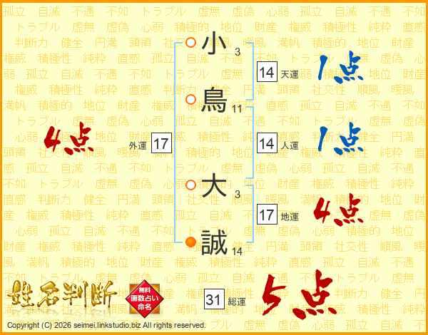 小鳥大誠さんの総運は31画の5点!