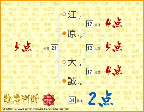 江原大誠さんの総運は34画の2点!