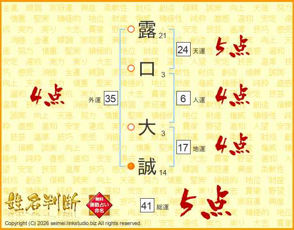 露口大誠さんの総運は41画の5点!