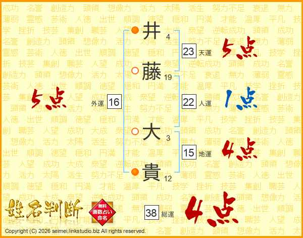 井藤大貴さんの総運は38画の4点!