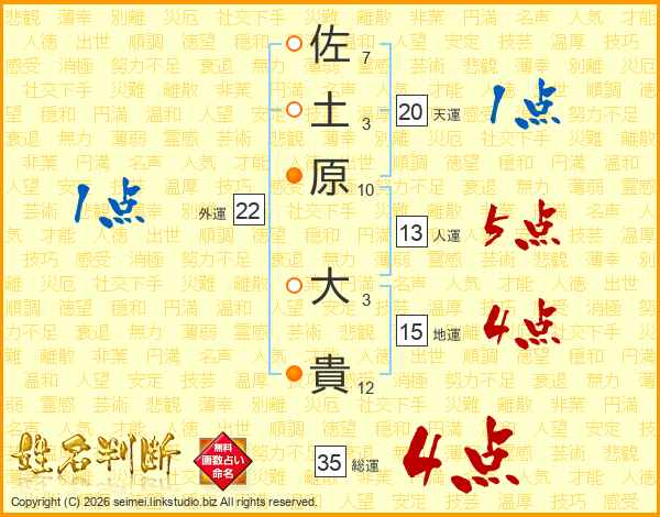 佐土原大貴さんの総運は35画の4点!