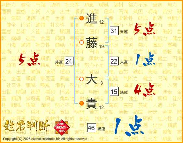進(12画)藤(19画) 大(3画)貴(12画)