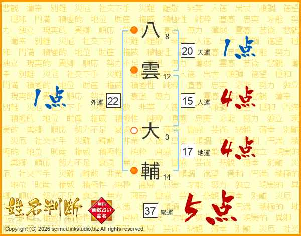 八雲大輔さんの総運は37画の5点!
