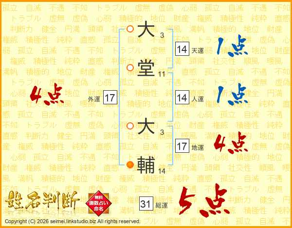 大堂大輔さんの総運は31画の5点!