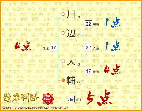 川辺大輔さんの総運は39画の5点!
